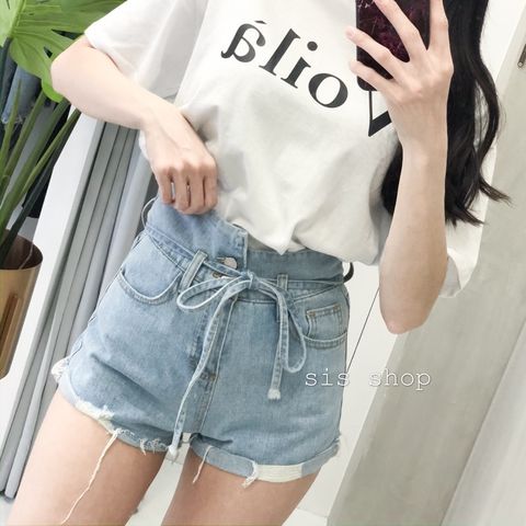 獨家訂製單扣高腰顯瘦牛仔短褲