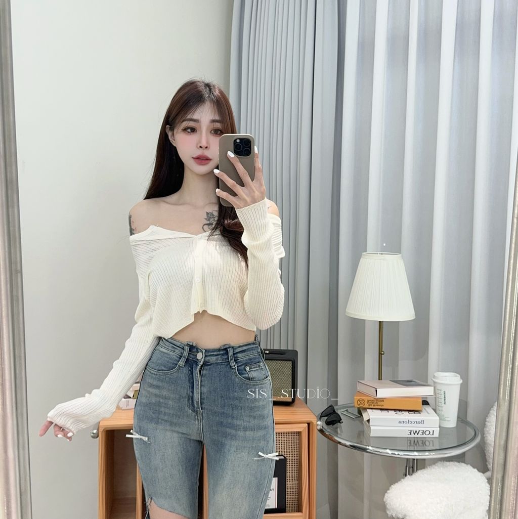 可當外套 上衣 也可一字領 彈力針織材質 柔軟舒服好穿 可穿到L唷❤️